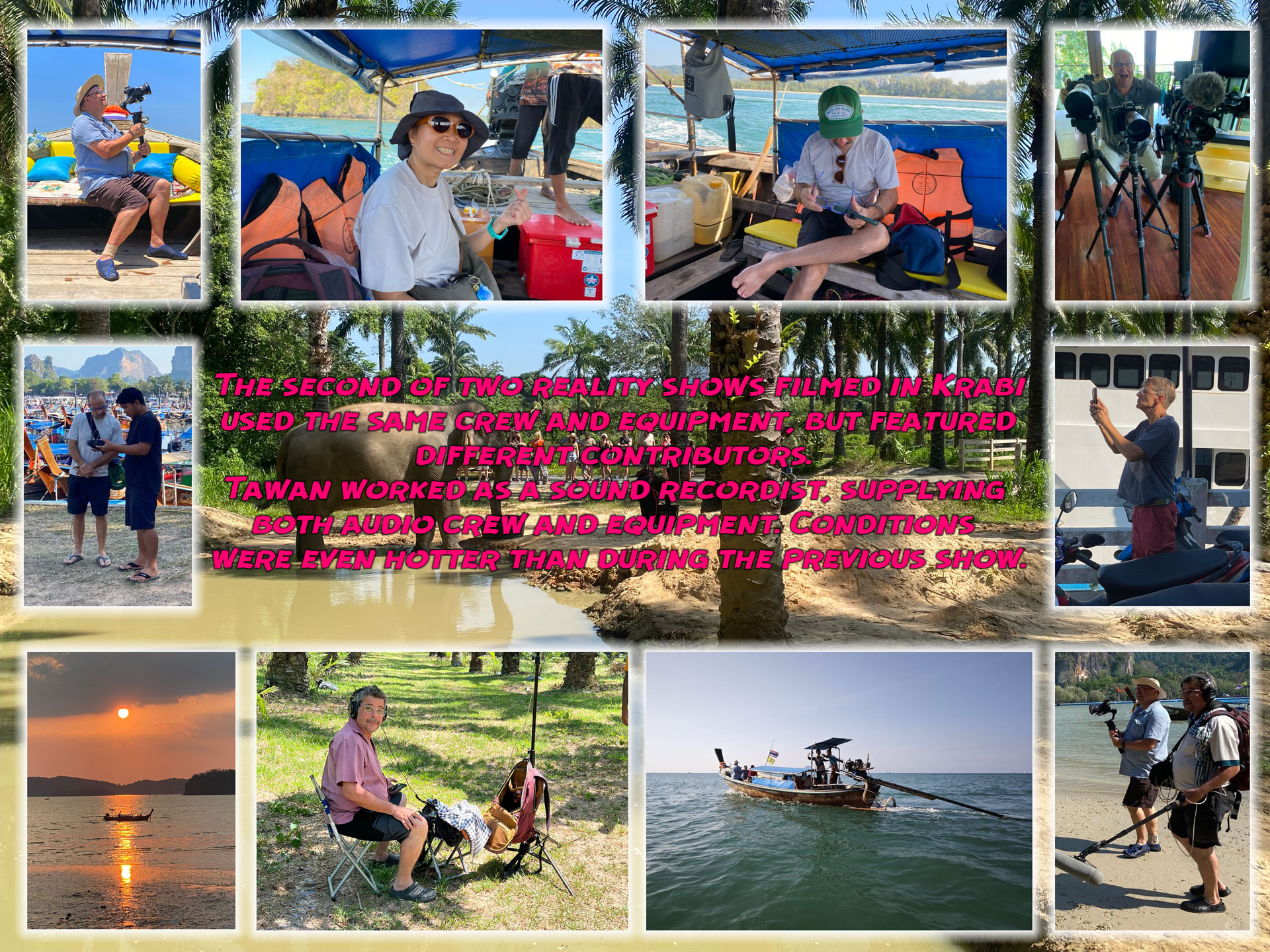 The second of two reality shows filmed in Krabi used the same crew and equipment, but featured different contributors. Tawan worked as a sound recordist, supplying both audio crew and equipment. Conditions were even hotter than during the previous show.
