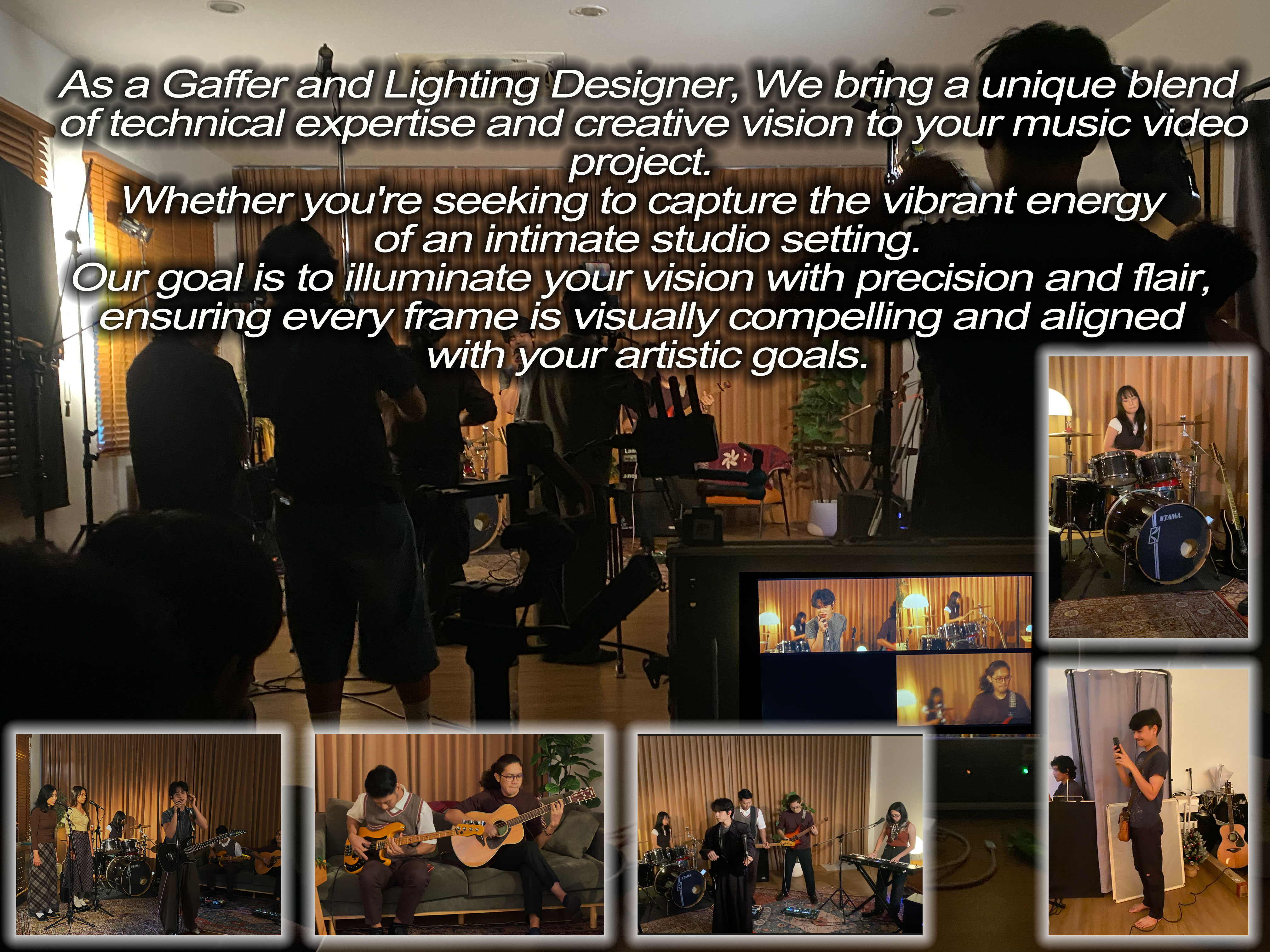 We bring a unique blend of technical expertise and creative vision to your music video project. Whether you're seeking to capture the vibrant energy of urban Bangkok or to create an intimate studio setting, our goal is to illuminate your vision with precision and flair, ensuring every frame is visually compelling and aligned with your artistic goals.