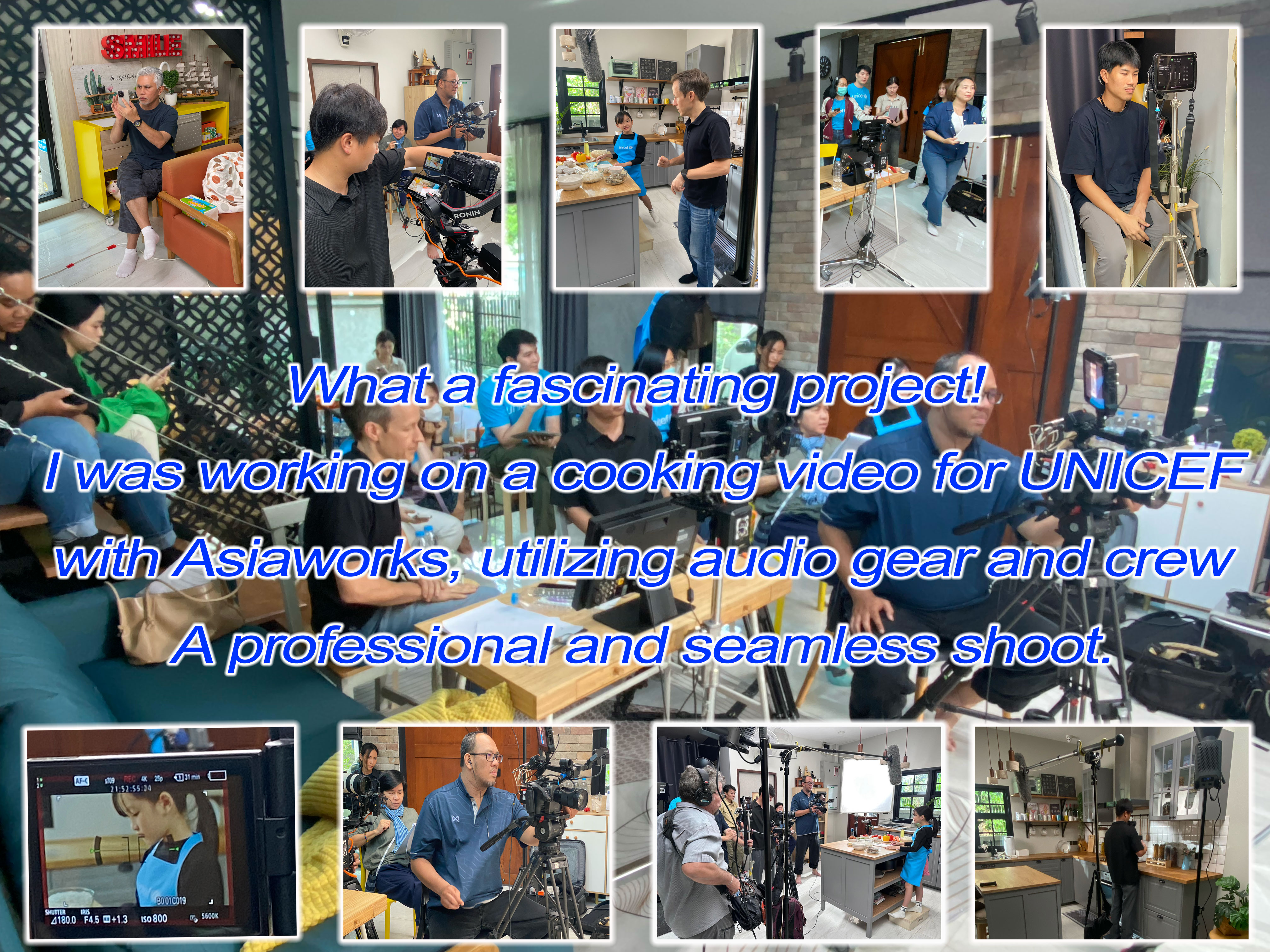 Tawan was working on a cooking video project for UNICEF, in collaboration with Asiaworks and Tawan (providing audio equipment and professional crew services). This project will feature creative, instructional content aimed at promoting healthy eating and nutrition practices, particularly within UNICEF’s global focus areas. The video will utilize high-quality production values, including professional audio and visuals to ensure educational and engaging content.